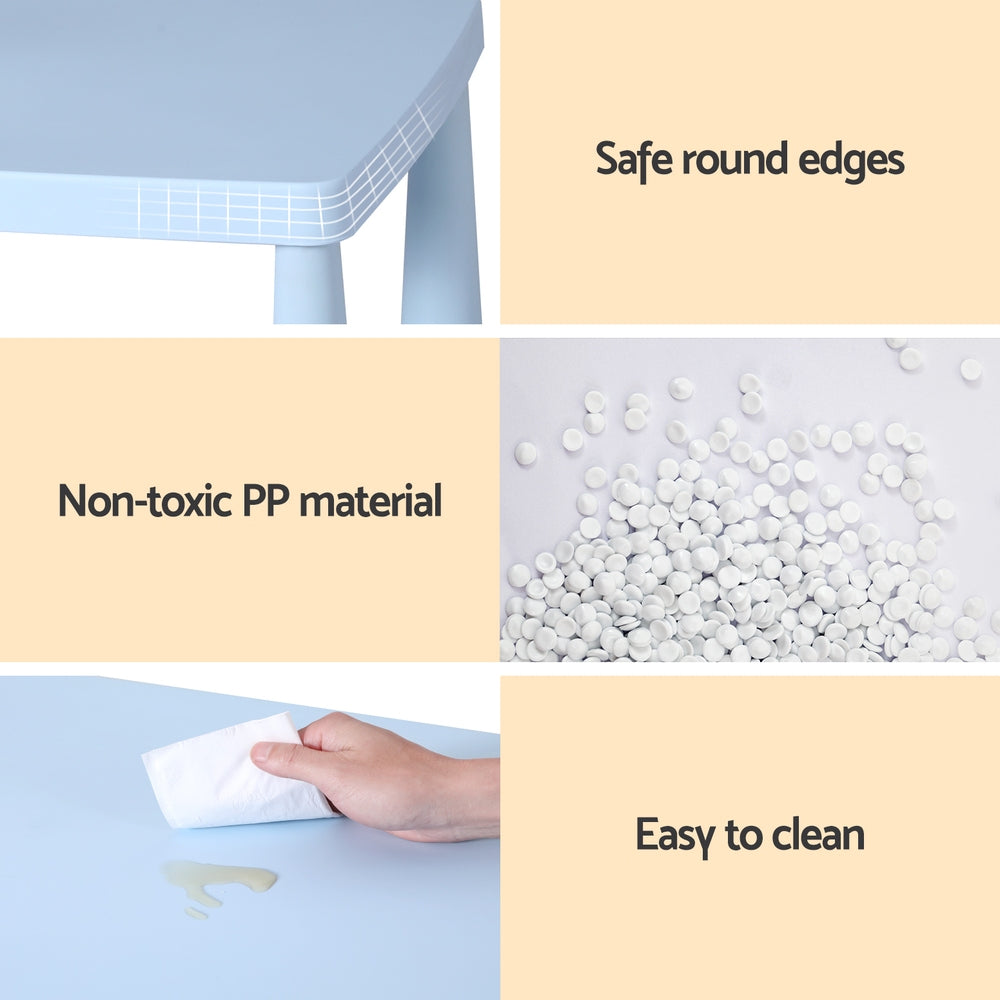 Make playtime or study time more enjoyable with the Keezi Kids Table and Chairs Set. Designed in fun colours, this set includes one sturdy table and two matching chairs, perfect for children aged 3+. Crafted from non-toxic PP material, it’s both safe and durable, with smooth edges and strong construction to handle daily use. Easy to assemble, clean, and maintain—this set is the ideal addition to any child’s room, play area, or study corner.