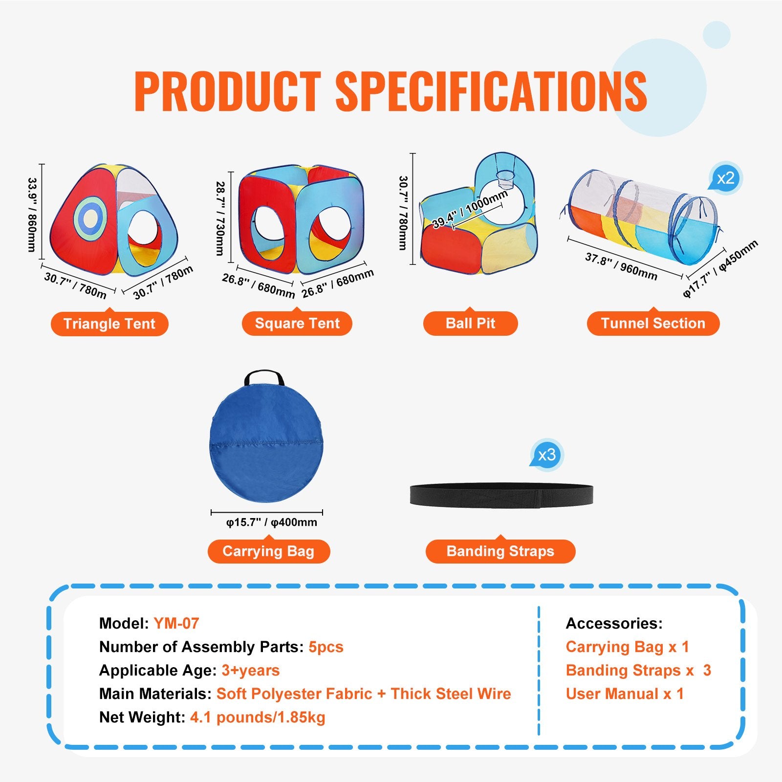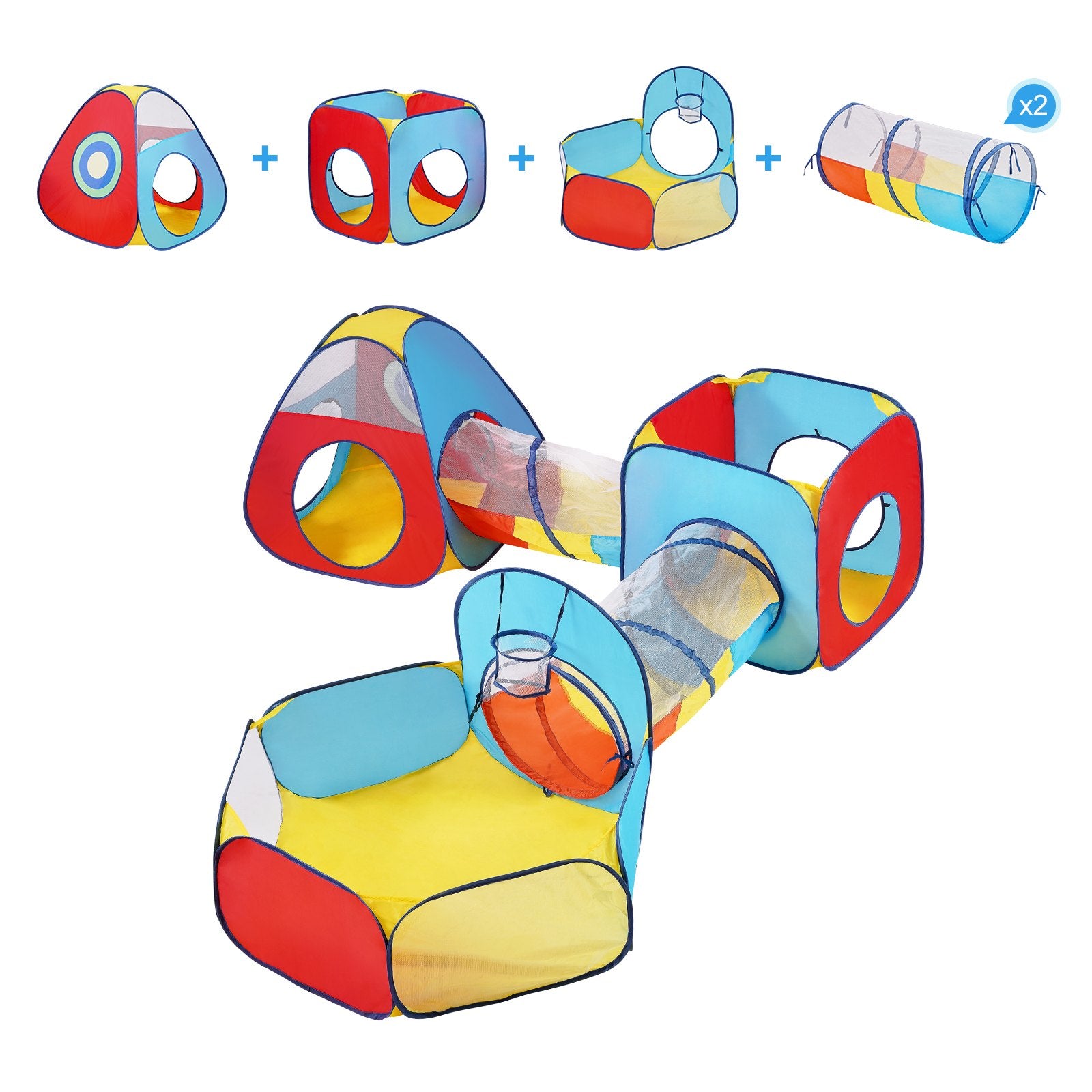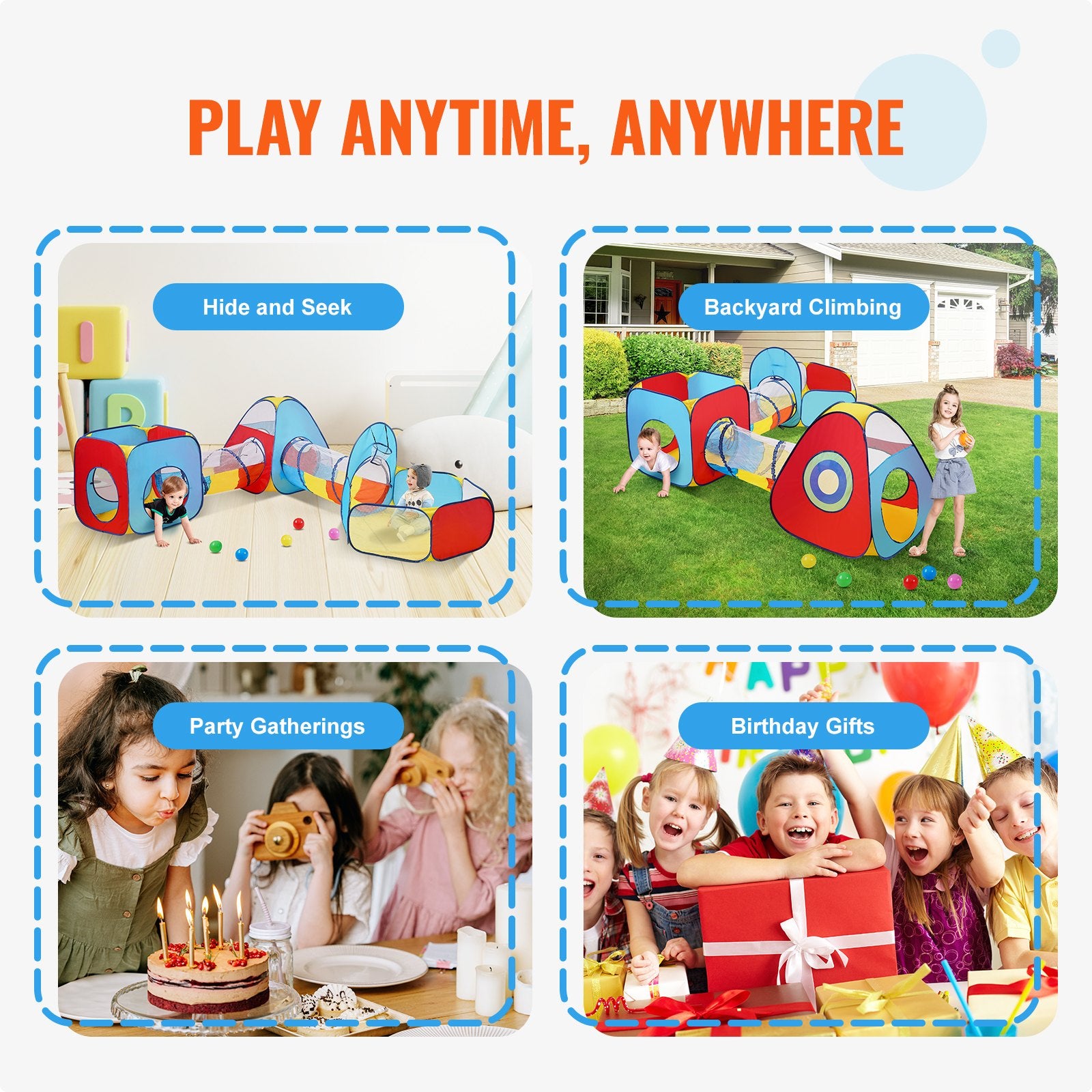 Turn playtime into an adventure! The VEVOR 5-in-1 Play Tent is a bright and exciting indoor/outdoor playground that includes: